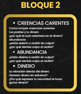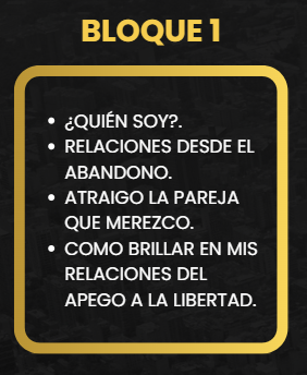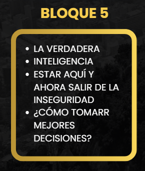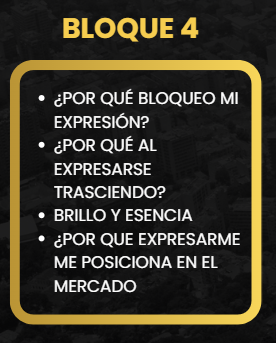 Vivirás una experiencia única de 4 días dónde romperás esquemas mentales y trascenderás bloqueos emocionales en tu empoderamiento, merecimiento y éxito que se ven reflejados en tus relaciones, dinero, área laboral, comunicación y proyección de tu brillo como persona.